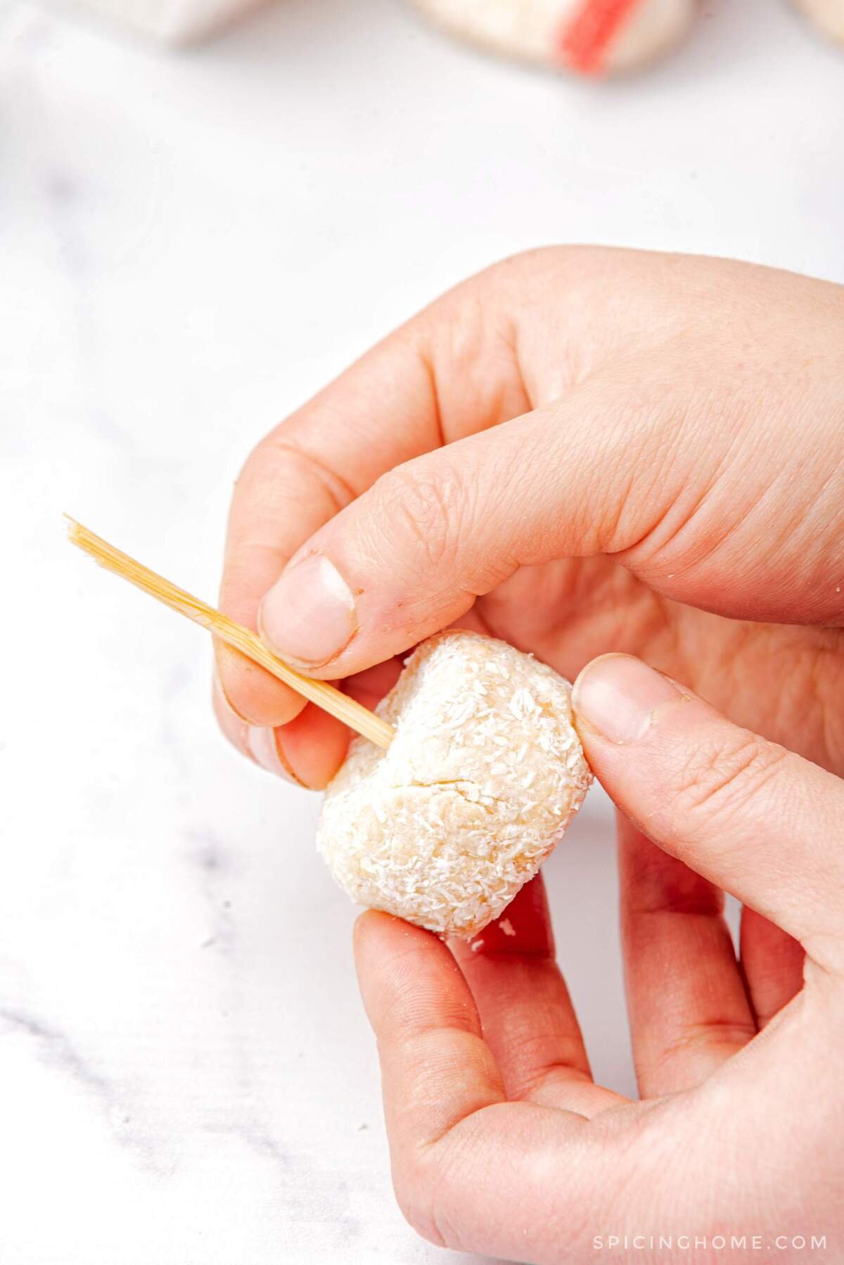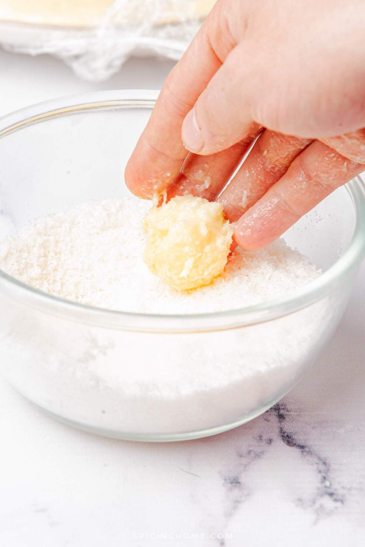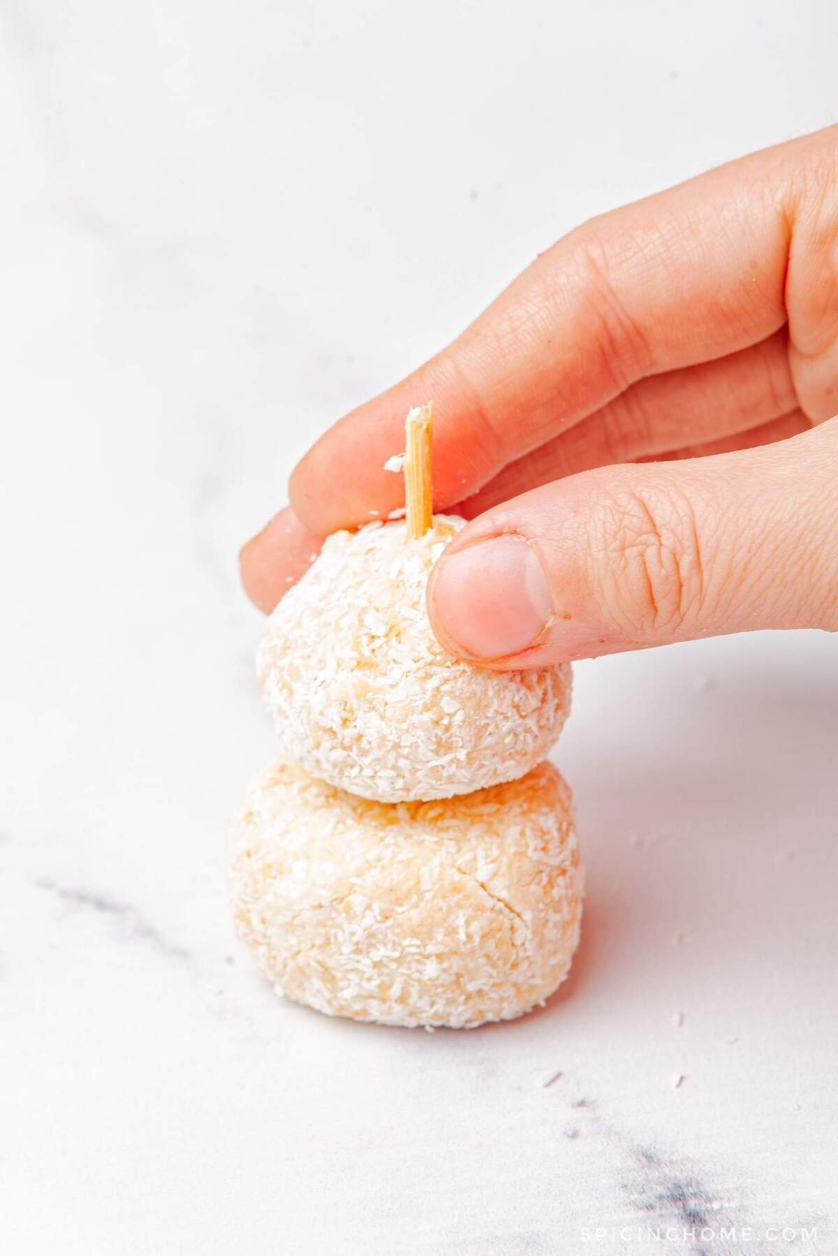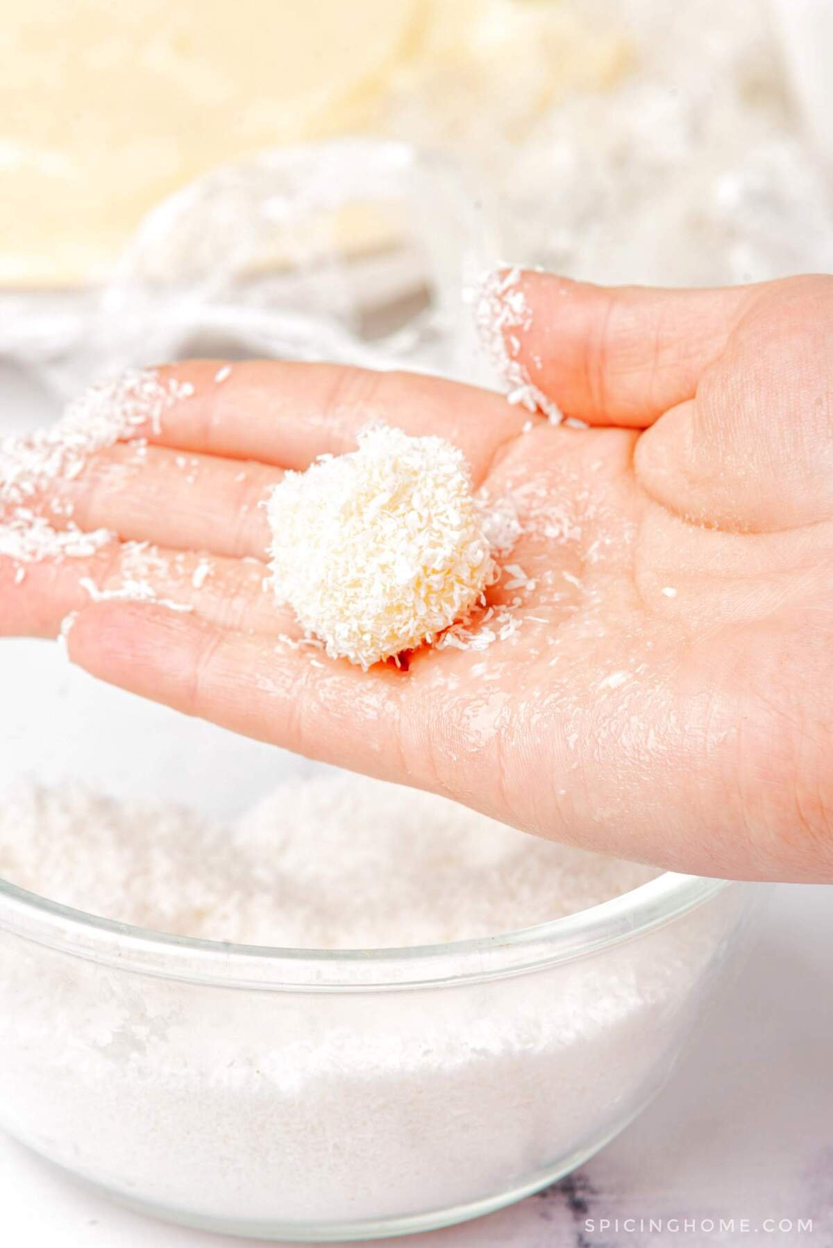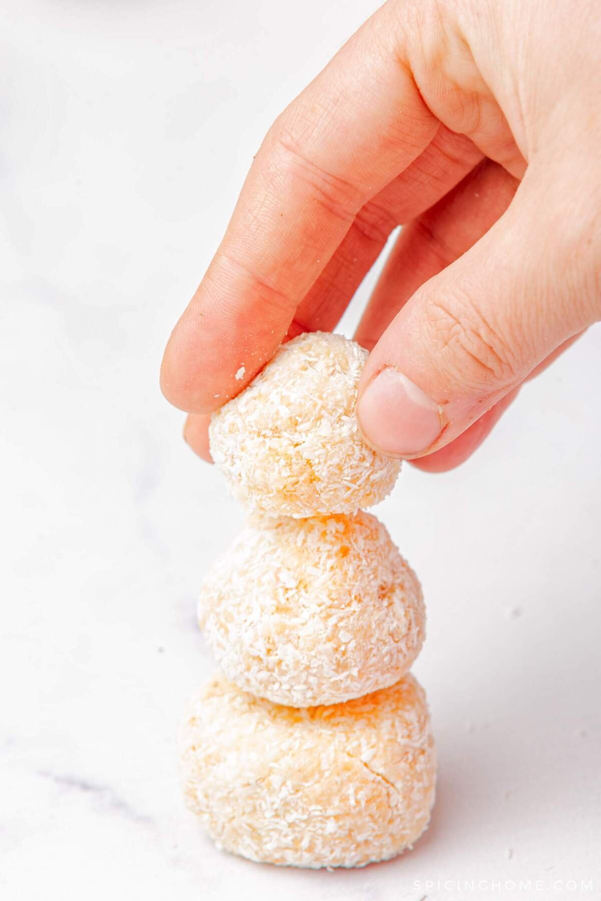 ● If the mixture is too sticky to handle, add a bit more shredded coconut.