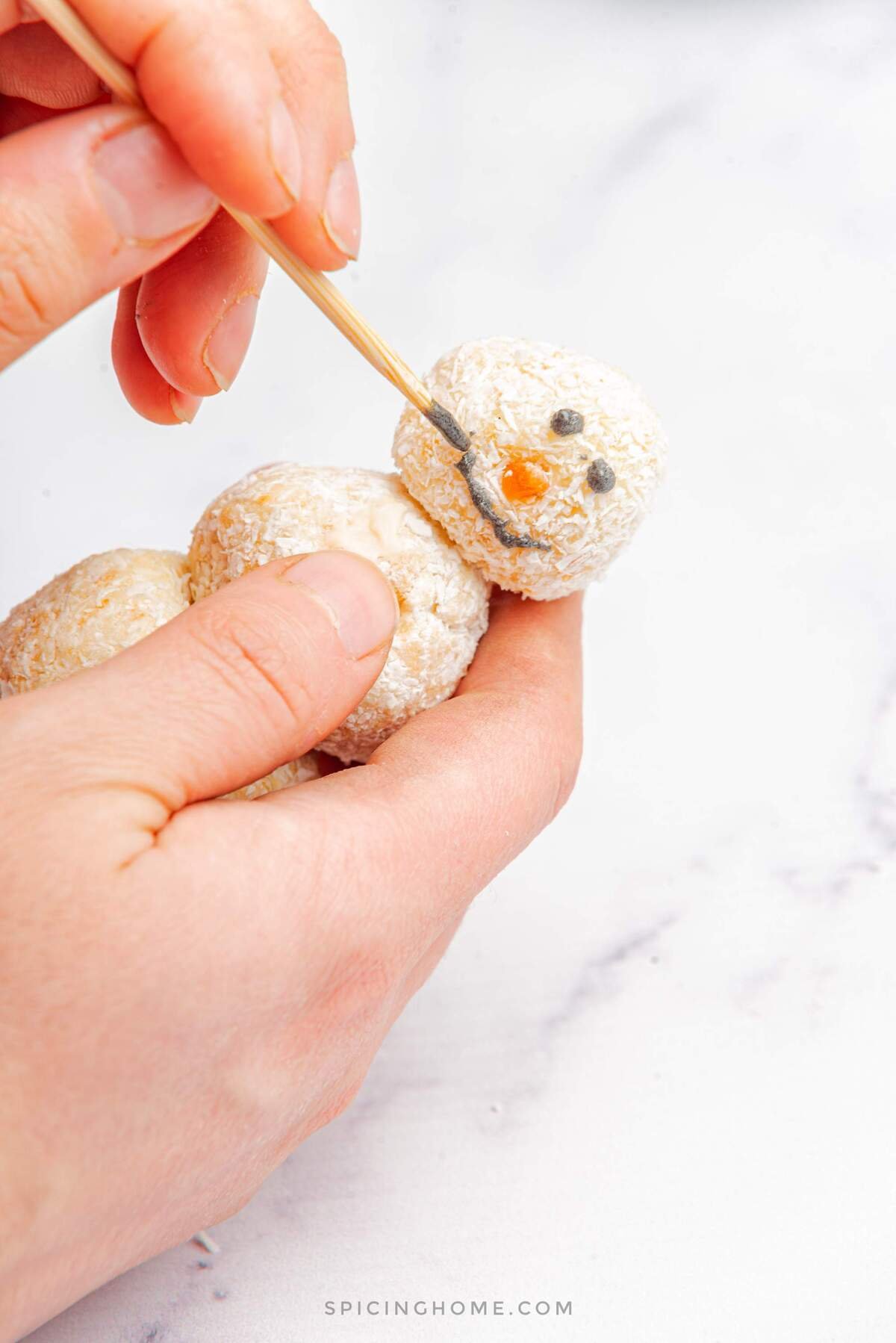 ○ Refrigerate the snowmen for at least 20 minutes before serving to allow the decorations to set.