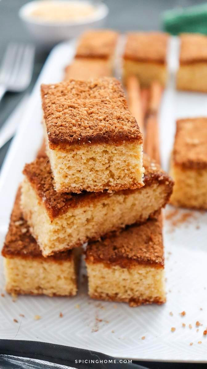 Enjoy your homemade snickerdoodle bars with a glass of milk or a cup of coffee!